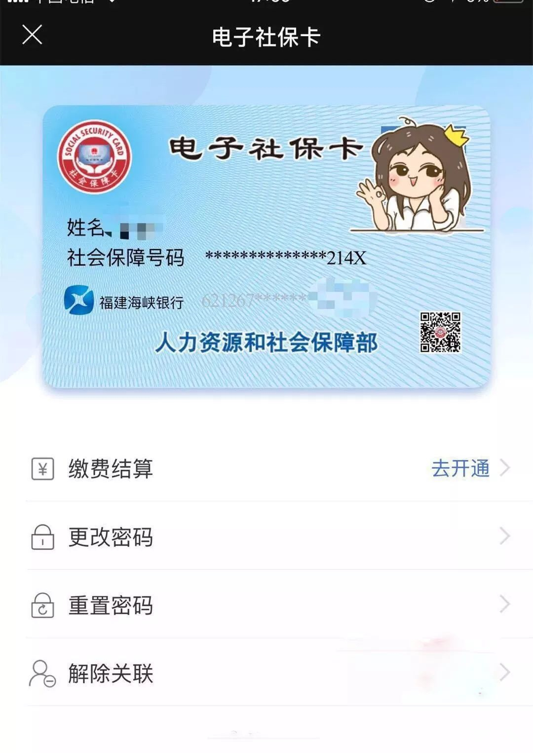 | 想知道自己和单位每月各缴多少保费?想看看自己连续缴纳社保的时间累计有多少个月了?想了解自己社保卡里医保个人账户用了多少钱?现在还有多少?告诉大家一个好消息!!! 近日,福州市上线了电子社保卡!市民足不出户就可以进行社保查询 可以说如今医疗、就业、金融等领域都已经离不开社保卡未来还会有更多领域要用到社保卡“查询社保” 渐渐成为了很多人的“刚需” 但传统社保需费时费力在电脑上查询去缴费有时甚至还要排长队等候这样的麻烦以后都可以省了!!!在今年4月数字中国建设峰会上,福州、青岛、成都被人社部列入首批全国统一电子社保卡试点城市。为落实试点任务,福州市人社局组织相关业务部门及技术团队,按照电子社保卡试点技术标准规范,对接全国社保卡平台。目前,全国统一电子社保卡已经在福州市率先上线。按照人社部统一部署规划,全国统一电子社保卡与实体社保卡一一对应,由全国电子社保卡统一签发、统一认证,是社保卡线上应用的有效电子凭证。 那么,问题来了!!!“电子社保卡”该如何绑定呢?具体流程非常简单只要三分钟就能搞定一起来看看吧 首先在手机上下载一个“福州智慧人社”APP点击“我的”按照提示完成实名注册然后点击“电子社保卡”进行领取 经过实名、实卡以及人脸识别实人认证以后进入设置密码环节 完成以上步骤就能在线领取到一张专属个人的电子社保卡再点击“缴费结算”进行开通 电子社保卡激活以后市民可以在手机上为自己的社保卡设置密码不用再去海峡银行或者其他网点排队办理了!!! 除此以外“电子社保卡”还有什么功能呢?接下来 我们一起来了解一下首批电子社保卡的应用服务清单: ★ 电子社保卡签发; ★ 个人社保卡管理,包括社保卡社保功能的挂失、解挂、停用、启用、密码修改及重置等(与社保卡金融账户管理无关) ★ 服务机构查询,提供社保卡制发卡网点、民办职业培训学校、职业技能鉴定机构等网点查询和导航功能; ★ 个人档案寄存查询等各类便捷服务。 据了解下一步全国统一电子社保卡将陆续推出更多服务其中包括医保结算功能 ★ 机关事业单位、企业职工、城乡居民社保缴费实时查询 ★ 提供就业创业证、社保缴费、职称证书、人才认定证明等电子证明; ★ 推进在药店、医院医保本地和跨地区支付结算应用; ★ 各类就业创业补贴、人才补贴、社保待遇通过电子社保卡银行账户发放;★ 个人享受社保待遇、就业创业和人才补贴政策和信息精准推送等。 截至2018年第一季度全国社保卡持卡人数达11.2亿人普及率达80.6%而在我们福清 几乎每个人都要用到社保卡如何让群众“方便办事”的同时还能“放心办事”“电子社保卡”是这样保障的:↓↓↓ 电子社保卡的推出,使社保卡线上线下应用结合更加紧密,全国和线上线下“一卡通行”的实现,将给群众带来更大的便利。另外,电子社保卡以实体社保卡安全体系为底座,结合电子认证、人工智能等互联网安全技术手段,确保群众能够在互联网上真正实现“实人、实名、实卡”,让群众“方便办事”的同时,还能“放心办事”。 以后福清市民出门不用随身携带社保卡只要轻松点击手机 便可实现在人社窗口办事在药店买药在医院看病……让我们为“互联网+”时代点个赞! |